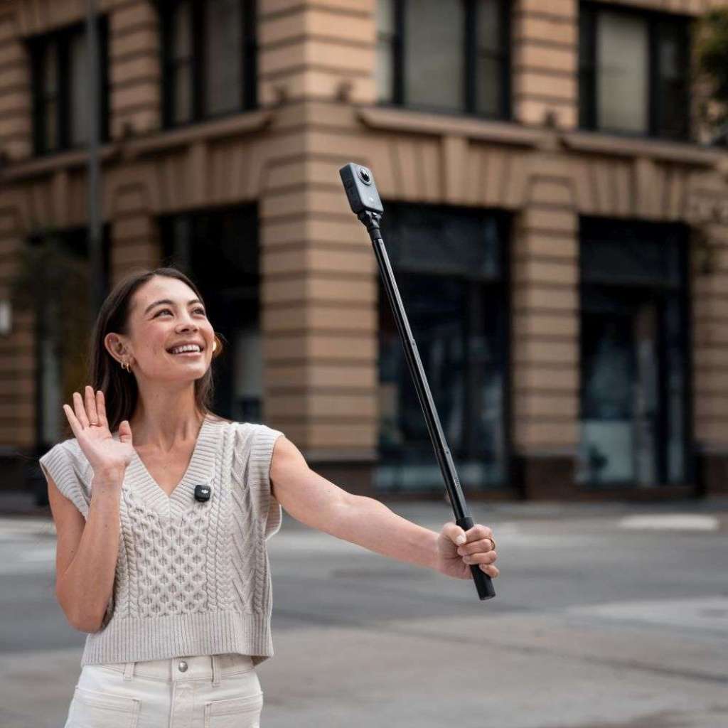 Karbonová selfie tyč se vysune až na 1,2 m a v záběru Osmo 360 zcela zmizí, čímž otevře širokou third-person perspektivu. Kit obsahuje nastavitelný rychloupínací adaptér pro okamžité změny úhlu záběru.